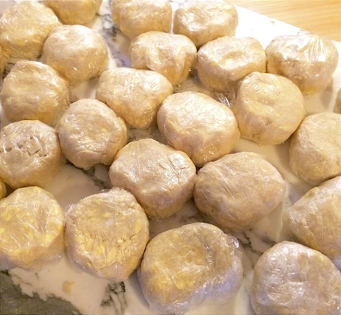 While I was up there I remembered the only time I had need of using ten pie carriers. In the fall of 2016, the year Art of the Pie was released, my NY publisher asked if I could bring ten pies to the Fall Show of the Pacific Northwest Booksellers Association (PNBA). Of course I said yes. The day before the show I made a lot of discs of dough, setting them in to the fridge to rest and chill overnight.