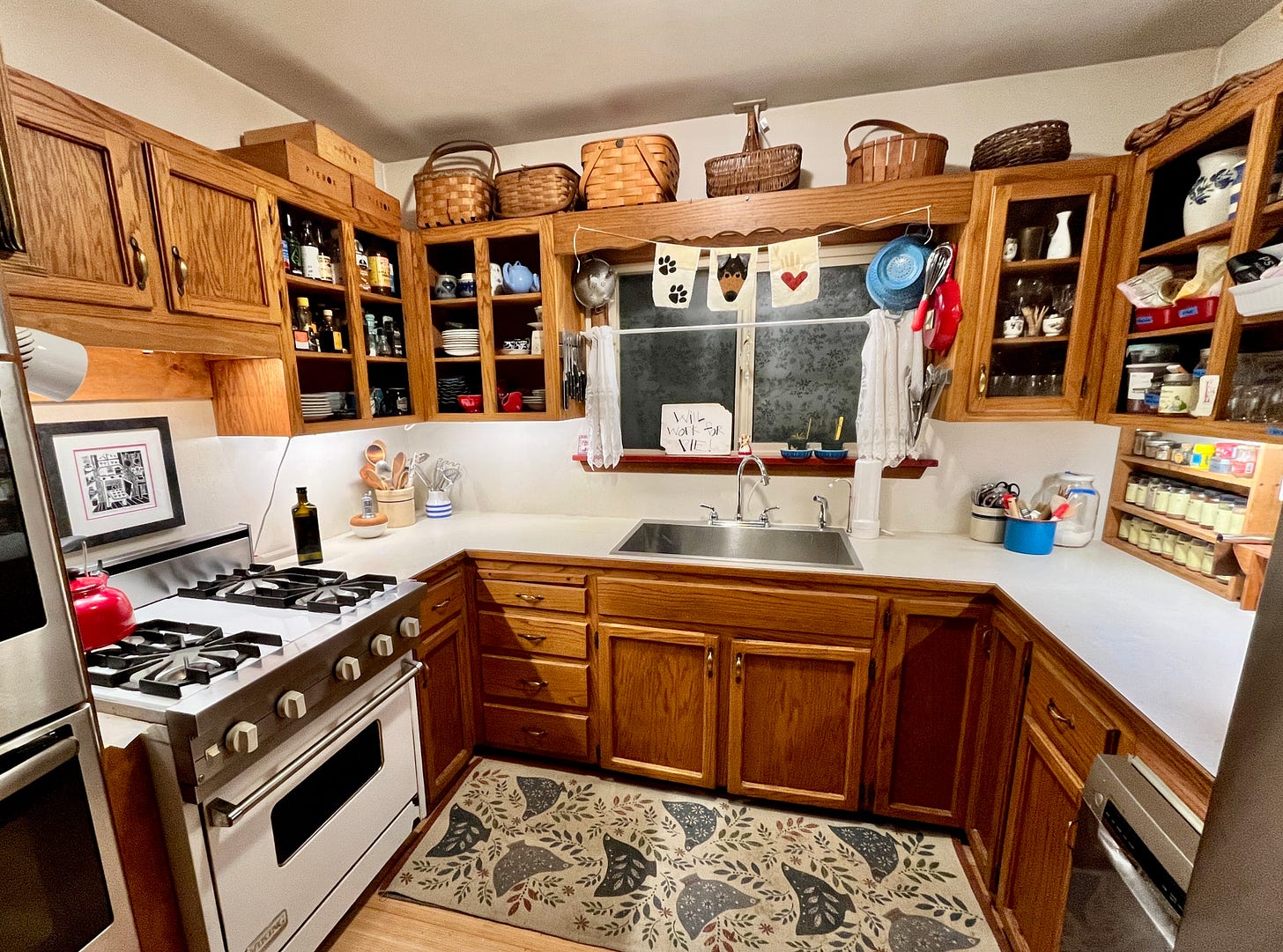 Your kitchen is gorgeous, Kate! Love that red kettle! Thanks for sharing your cleaning regimen and the “in-progress” photos. It might inspire me. The book recommendations are welcome too—I already have a cherished copy of Art of the Pie. Now I just need your autograph on it—and a slice of pie!😋